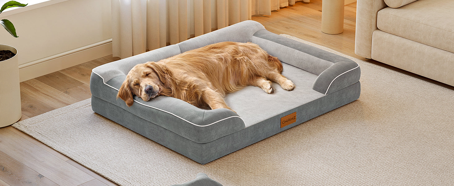 Dog Beds for Large Dogs, Orthopedic Dog Bed with Cooling Gel Memory Foam, Waterproof Large Dog Bed with Removable Washable Cover, 36" Dog Sofa Couch Dutch Velvet with Bone Toy
